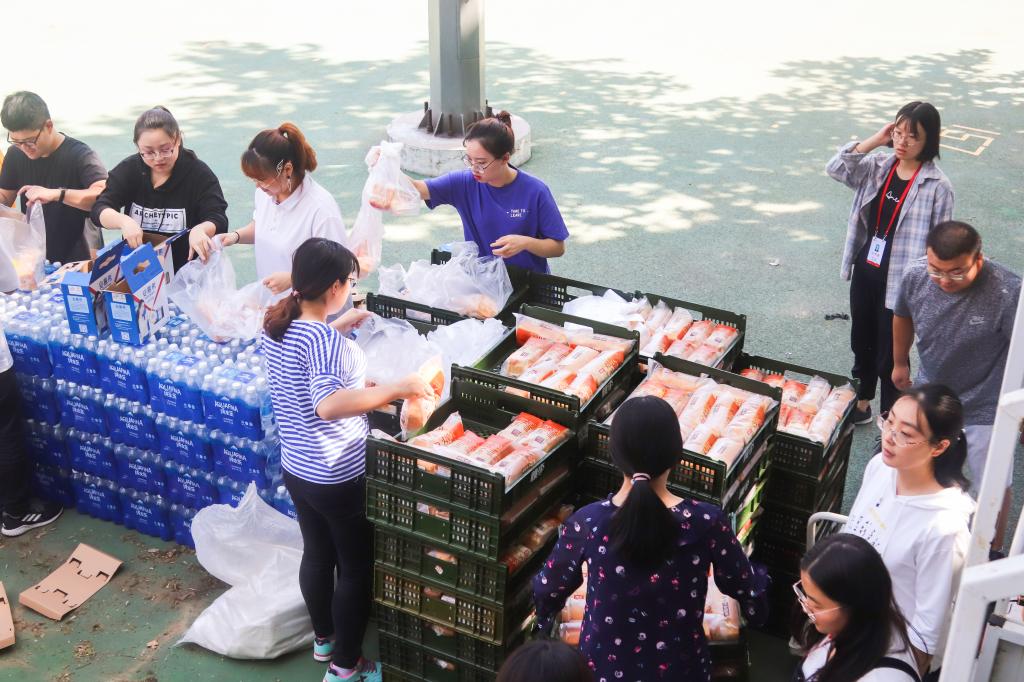 除了老师们之间,师生之间也会有磨合的问题。后勤组里的老师和同学来自不同学院,平时一起工作的机会很少,因此大家在工作开始之初也会有些“羞涩”。令她印象深刻的,是八月份的一次物资集中发放。当时,一千多名队员涌入学生活动中心领取慰问物资。而由于之前缺少经验,导致工作组的老师同学们手忙脚乱,直至晚上十一点多才发完。伴着星光离开学活,后勤组同学疲累的神情,排队同学偶尔的抱怨令她愧疚不已。也正是在这次经历中,杨老师积累了许多工作经验, “人力资源调整的安排一定要细化,提前统筹安排,而作为老师,要尽量亲力亲为,在之后所有涉及我的后勤工作,我都到场和学生一起完成,出现问题马上协调解决。”从此,精细化安排和同甘共苦成为杨老师打赢一场场“战役”的关键武器。