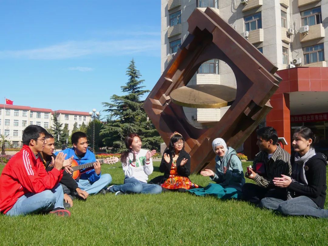 利用业余时间,与少数民族学生一起准备迎新晚会节目