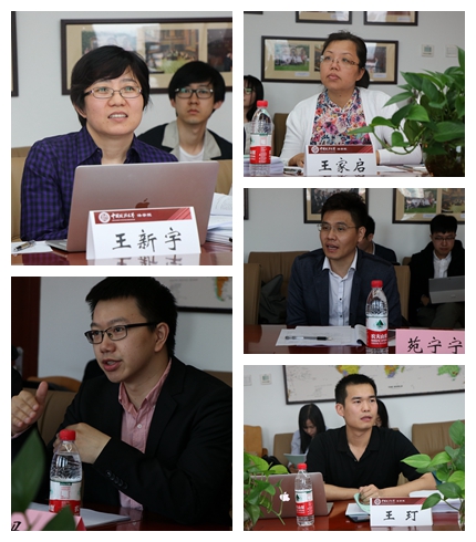 答辩模拟正式答辩流程。每名同学按照规定时间进行论文陈述,随后由三位答辩老师结合论文进行提问,最后,答辩评委对学生的现场表现给出指导意见和建议,每名参赛同学总用时约20分钟。王新宇、冯威、苑宁宁老师以及博士生王玎提出了很多针对性较强的问题,并耐心细致地对每位学生提供了答辩指导和宝贵建议,参加活动的所有同学都表示受益匪浅。